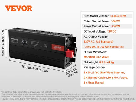 Modificirani sinusni inverter isporučuje pouzdanu, kompaktno pretvaranje energije iz 12V DC u 230V AC (EU/AU) ili 120V AC (SAD) za pokretanje vaših osnovnih uređaja bilo gdje da vam je potrebno. Dostupan u varijantama od 1500W, 3000W i 5000W (SGM-1500W / SGM-3000W / TM5000W), kombinira učinkovito pretvaranje energije s robusnim sigurnosnim značajkama za dom, ured, kampiranje ili rezervnu energiju. Izgrađen s šest zaštitnih slojeva, pametnim sustavom hlađenja i čistim bakrenim kablovima, ovaj inverter minimizira gubitak energije dok štiti vašu opremu. Njegov tihi, temperaturno kontrolirani ventilator aktivira se samo kada je potrebno, pomažući produžiti vijek trajanja baterije i performanse. Sva elektronička i mehanička oprema, uređaji i strojevi koje prodaje InterCyprus zemljama EU su CE certificirani i imaju dvogodišnje jamstvo. Pronađite pravi izbor za svoje potrebe među opcijama od 1000W–5000W, uključujući i modificirane i čiste sinusne modele, dizajnirane za napajanje pametnih telefona, prijenosnih računala, igraćih konzola, Kindles, svjetala i malih uređaja s lakoćom. Na intercyprus.com od 2002. — pouzdano za kvalitetu i pouzdanost.