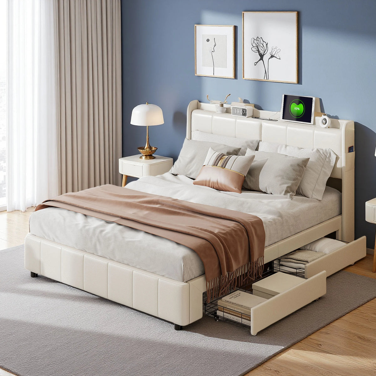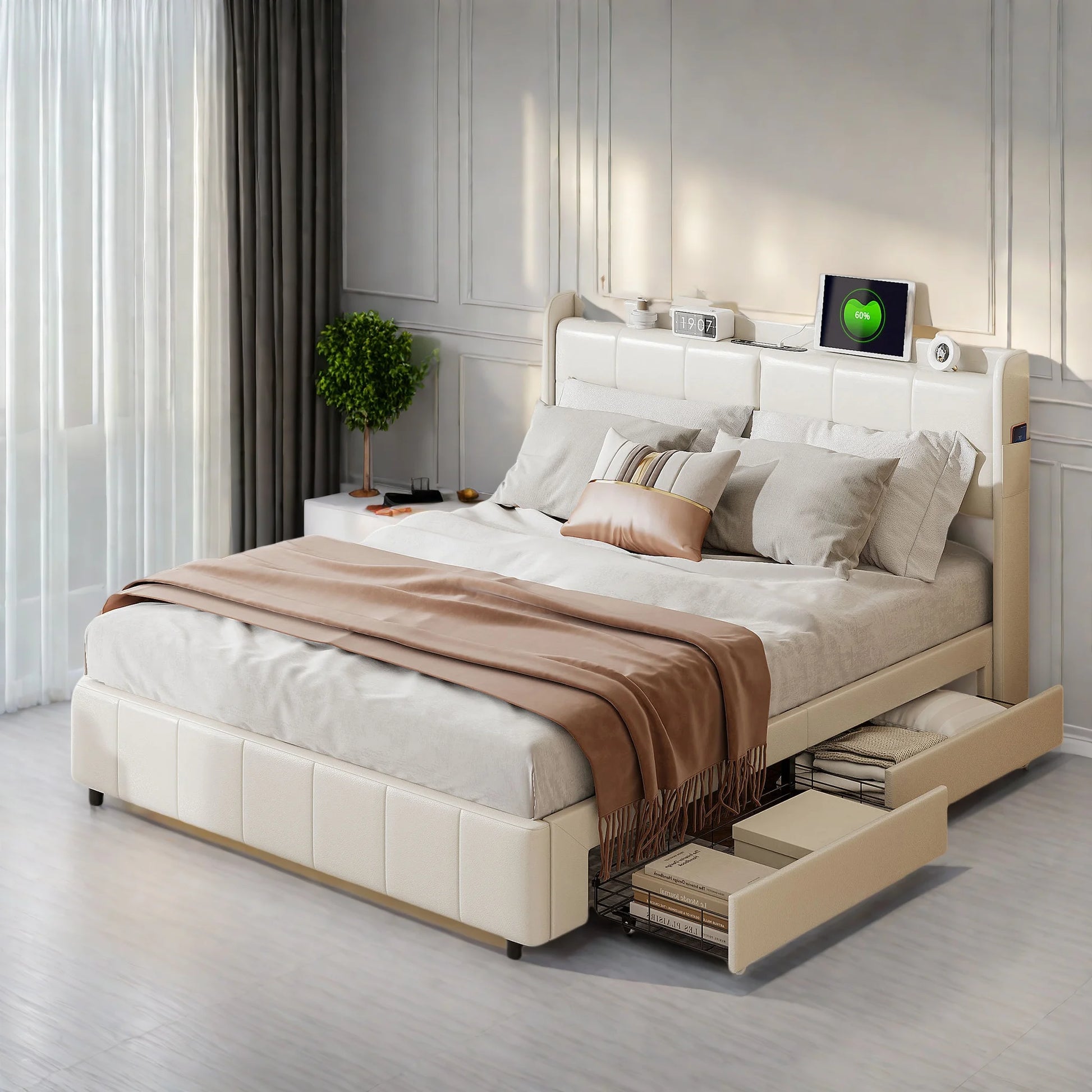 Četiri bočna ladice nude dovoljno skrivenog skladišta za sezonsku odjeću, dodatne posteljine i svakodnevne potrepštine. Održavajte svoj prostor urednim i svoje potrepštine nadohvat ruke, dok zadržavate elegantan, minimalistički izgled koji odgovara nordijskim, suvremenim ili romantičnim dekor temama. USB priključak za punjenje dodaje promišljen dodir za punjenje telefona, tableta ili e-čitača iz kreveta, minimizirajući kablove i žice noću.
