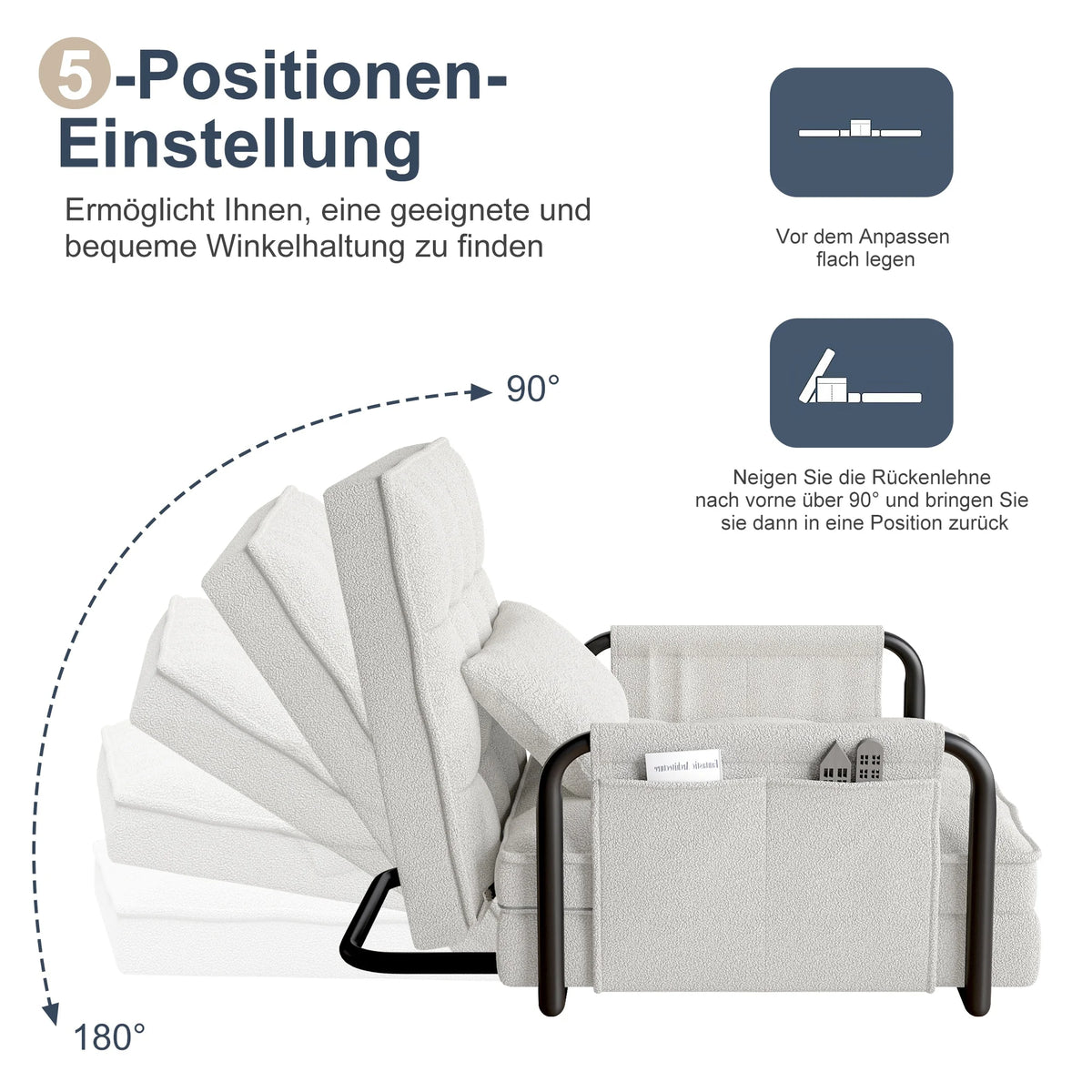 - Kontrola položaja: Pronađite svoj savršeni kut s naslonom za leđa s pet redova za opuštanje, čitanje ili filmske večeri.