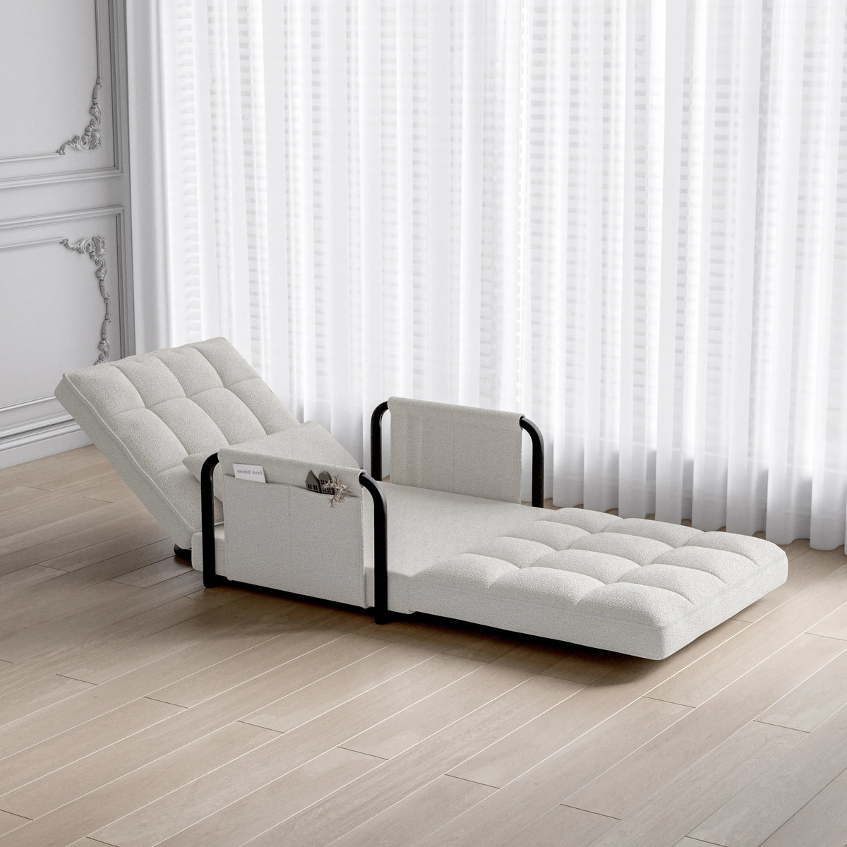 Pet redova za srce, udobnost bez granica: Ovaj bež/bijeli kauč na razvlačenje ima jedinstveni dizajn s pet redova koji se može prilagoditi, omogućujući vam da se opustite, odmorite ili se potpuno raširite kao krevet. Jednostavno prilagodite položaj koji vam najbolje odgovara za različite scene, držeći udobnost pod svojom kontrolom.