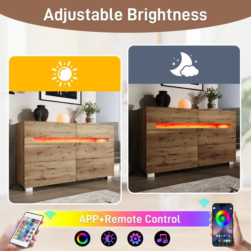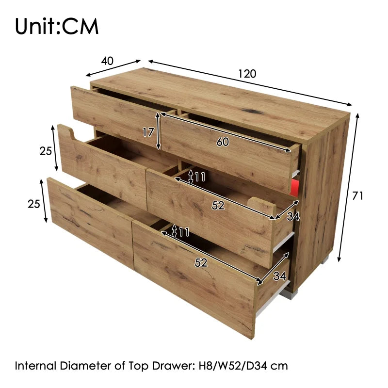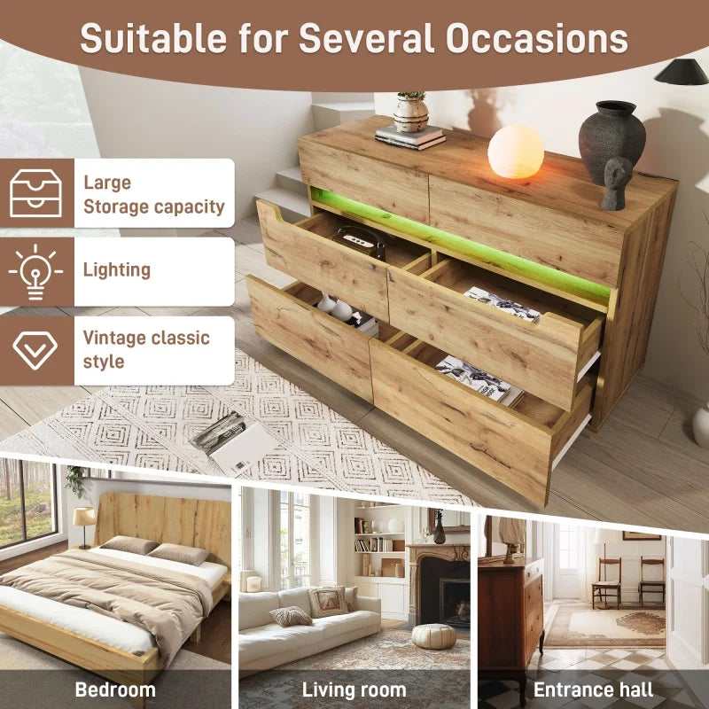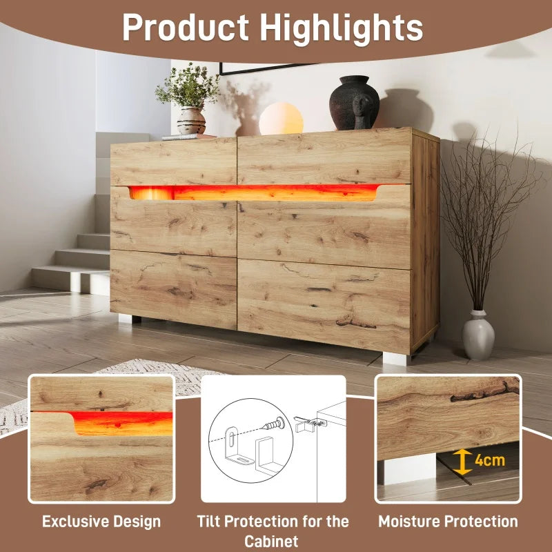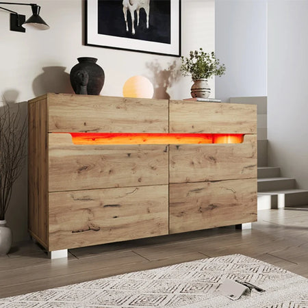 Drveni komoda s 6 ladica LED osvjetljenjem upravljanje aplikacijom