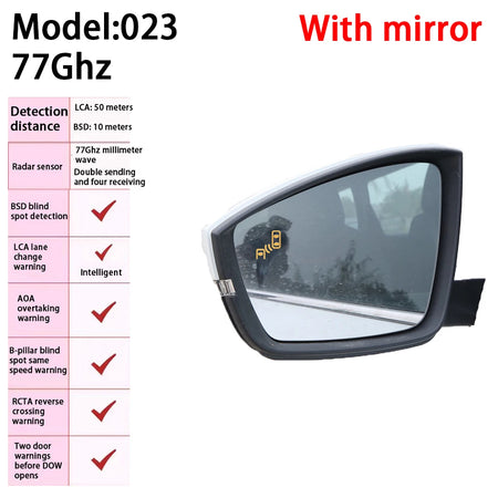 Dva mainstream radar uređaja rade na 24 GHz i 72 GHz kako bi detektirali pokretne objekte unutar 3–10 metara iza bočne strane vozila. Kada potencijalna prepreka uđe u područje upozorenja, sustav uključuje LED indikatore i može aktivirati vaše pokazivače ili zvučna upozorenja kako bi vas upozorio prije opasnog manevra. Ako se pokretni objekt detektira blizu stražnje strane, sustav može treptati LED-om s iste strane, aktivirati pokazivač ili emitirati trotonski signal kako bi vas upozorio na rizik od promjene trake ili blizine. Rezultat je mirnije, sigurnije iskustvo vožnje na prometnim autocestama, urbanom prometu i uskim parkirnim scenarijima.