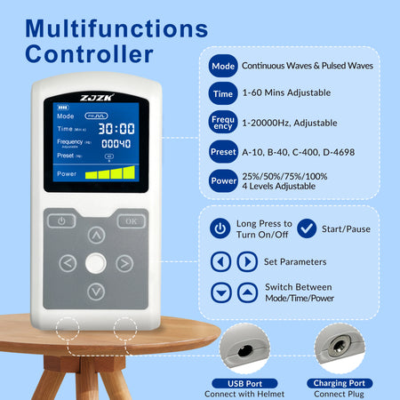 Parkinsons uređaj za biofeedback memorije infracrvena terapija mozga od MBBQNN kombinira naprednu fotobiomodulaciju s nosivom kacigom za terapiju mozga kako bi podržao zdravlje mozga. Koristeći 1070 nm blizu infracrvene svjetlosti i 280 LED dioda, energizira moždane stanice, poboljšava mitohondrijsku funkciju, potiče popravak tkiva i pomaže u upravljanju izazovima povezanim s Parkinsonovom bolešću, Alzheimerovom bolešću i moždanim udarom. Nudi četiri unaprijed postavljene frekvencije (10 Hz, 40 Hz, 400 Hz, 4698 Hz) plus širok podesivi raspon (1–20000 Hz) tako da možete prilagoditi sesije svojim potrebama. Ugrađena baterija od 10000 mAh omogućuje prijenosno liječenje, dok četiri razine snage (25%, 50%, 75%, 100%) omogućuju kontrolu intenziteta. S kontinuiranim ili pulsirajućim radom, vremenima liječenja od 1 do 60 minuta i globalnim napajanjem od 100–240 V, 50/60 Hz, ova kaciga je dizajnirana za praktičnu terapiju kod kuće. Dimenzije uređaja su 24 × 28 × 13 cm i teži oko 0.67 kg, što ga čini udobnim za nošenje tijekom sesija.