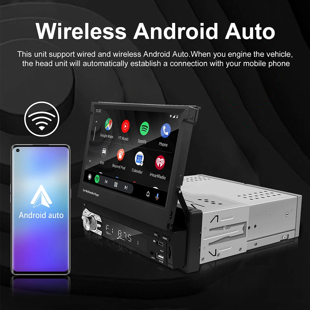 Scopri il Stereofonico Universale per Auto 1 Din 7 Pollici HD Flip-Out con CarPlay e Android Auto di EzoneTronics—l'unità principale compatta e universale che aggiorna il tuo cruscotto con integrazione moderna per smartphone senza un'installazione ingombrante. Alloggiato in un telaio sottile 1-DIN, nasconde un luminoso touchscreen HD da 7 pollici che si apre dolcemente e si inclina per una visione confortevole, offrendoti un centro console pulito e moderno che si adatta a un'ampia gamma di veicoli.