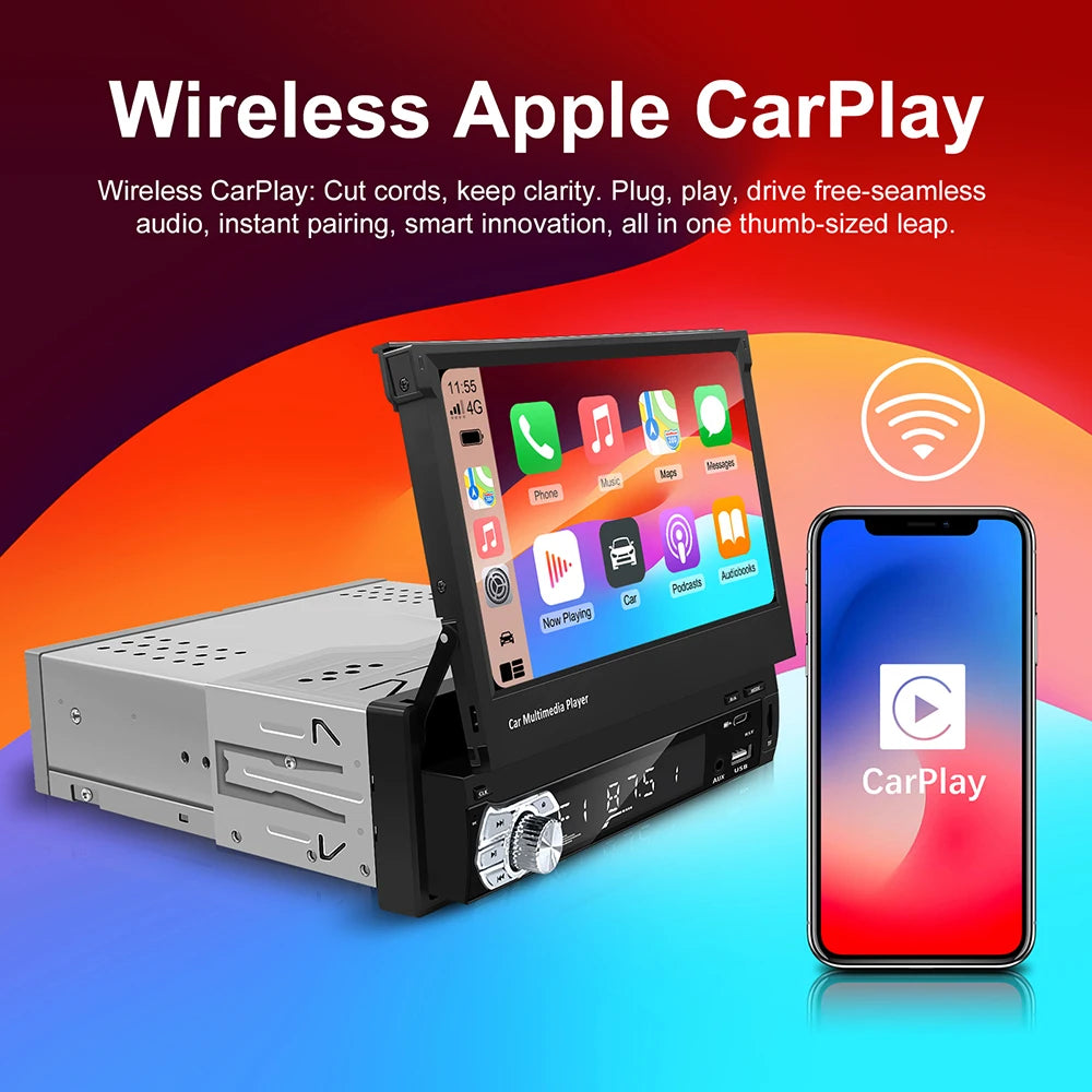 Autoradio Universale 1 Din 7 Pollici HD Estraibile con CarPlay e Android Auto