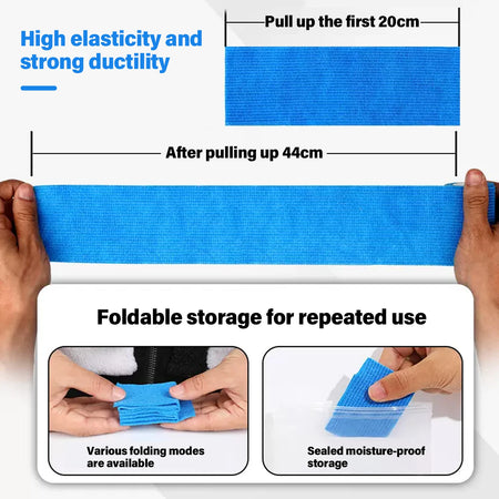 - Il design coesivo e autoadesivo si attacca a se stesso, rendendo l'applicazione e la rimozione rapide e confortevoli.