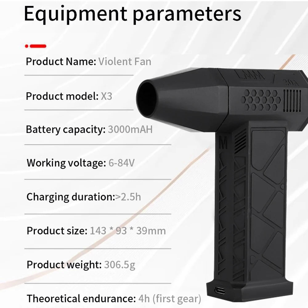 - 1 x Soffiatore ad aria portatile senza spazzole da 130000RPM (Ventilatore Jet X3)