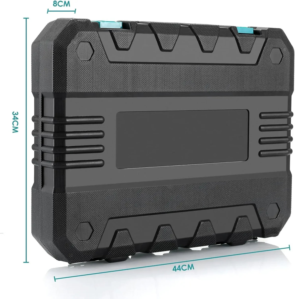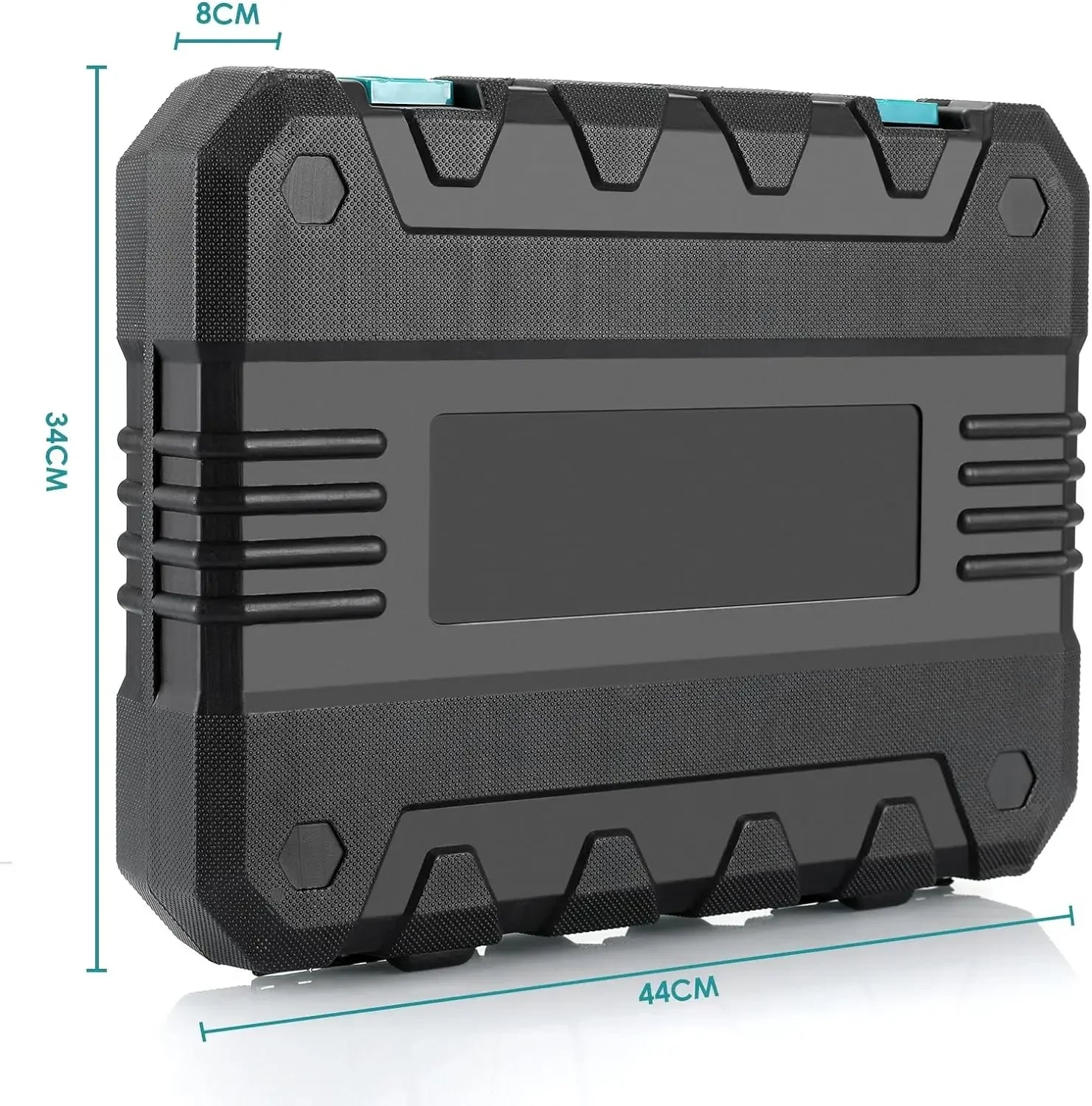 Organizzata per un facile accesso, la cassetta degli attrezzi misura circa 44 x 34 x 8 cm e pesa circa 6,5 kg, rendendola comoda da conservare in garage, officina o nel bagagliaio del veicolo. La custodia mantiene gli attrezzi ben fissati in posizione, così puoi trovare rapidamente ciò di cui hai bisogno e tenere tutto protetto quando non in uso.