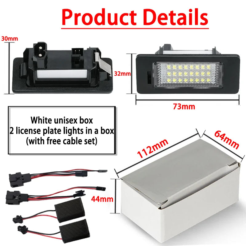 Aggiorna la tua Audi e i modelli correlati con un paio di luci per targa LED affidabili, progettate per una vestibilità pulita e simile a quella di fabbrica. Queste luci impermeabili, pronte per il CAN-bus, sostituiscono le unità di serie senza necessità di tagli o giunzioni. Realizzate con un resistente involucro in PC e ottiche LED brillanti, illuminano chiaramente la tua targa per una migliore visibilità e una guida notturna più sicura. Il controller CAN-bus integrato previene messaggi di errore sul cruscotto, offrendo un'installazione veramente plug-and-play. Valutate per temperature estreme (-35°C a 100°C) e progettate per resistere a condizioni meteorologiche umide, queste luci offrono prestazioni durature anno dopo anno. I LED bianchi e la lente frontale trasparente garantiscono una distribuzione della luce ampia per un'illuminazione uniforme della targa. Sostituzione diretta, nessuna modifica necessaria e compatibile con un'ampia gamma di veicoli Audi, VW, Porsche e Seat.