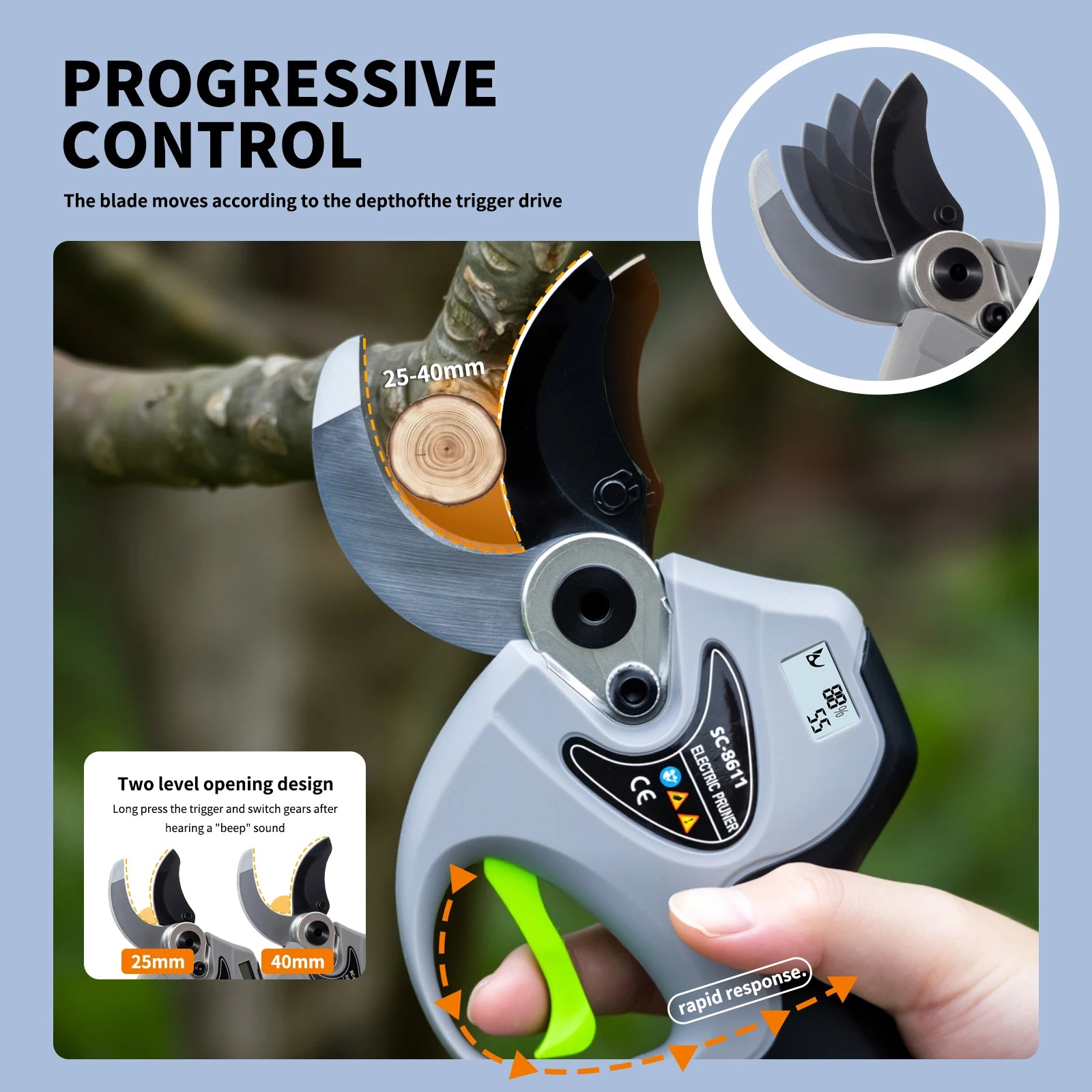 Potatore a batteria 21V con taglio da 40mm, motore senza spazzole, lama in tungsteno di OLOEY