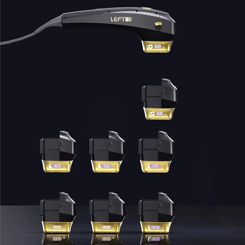 - La flessibilità della cartuccia con dimensioni standard SMAS (1,5 mm, 3,0 mm, 4,5 mm a 4 MHz) e dimensioni più grandi opzionali (6,0 mm, 8,0 mm, 10,0 mm, 13,0 mm, 16,0 mm, 18,0 mm a 2 MHz) consente un targeting preciso su viso e corpo.