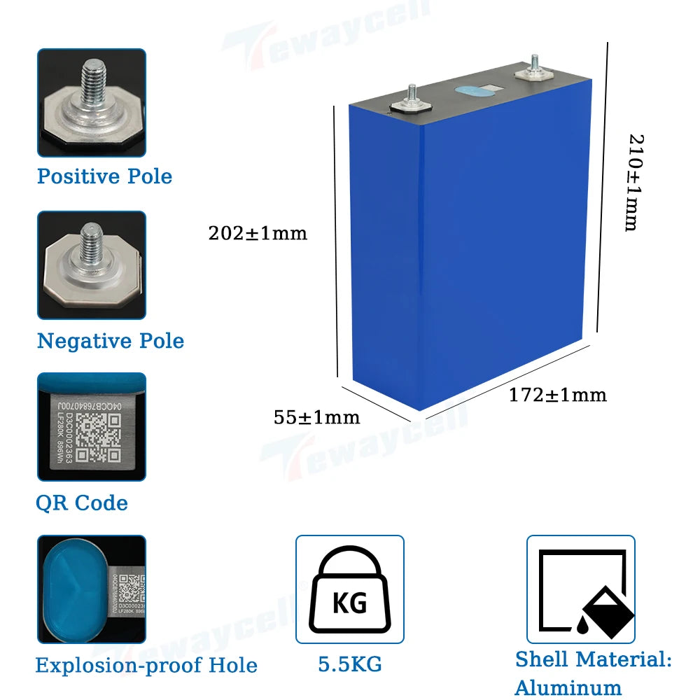 Tewaycell 280K V3 3.2V LiFePO4 Pacco Batteria 308Ah Capacità Reale 6000 Cicli per Solare RV UE Esente da Tasse