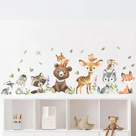 Adesivi murali a due pezzi con orso, cervo e coniglio per bambini