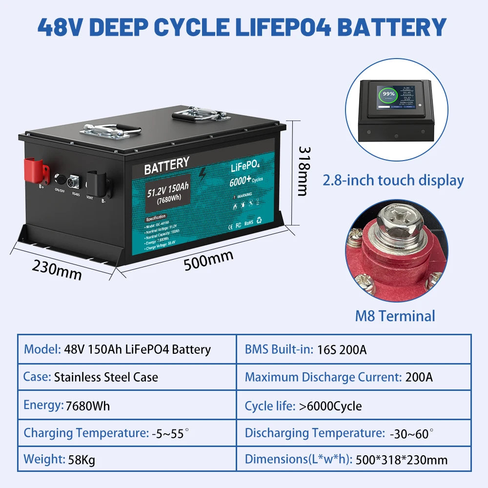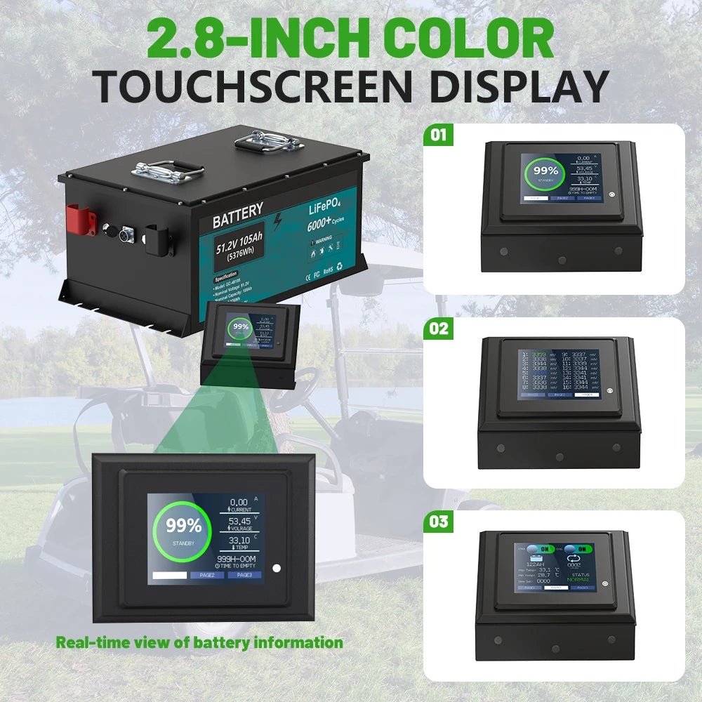 - 1 x Batteria per golf cart LiFePO4 48V 105Ah con BMS 200A integrato e touchscreen LCD da 2,8"