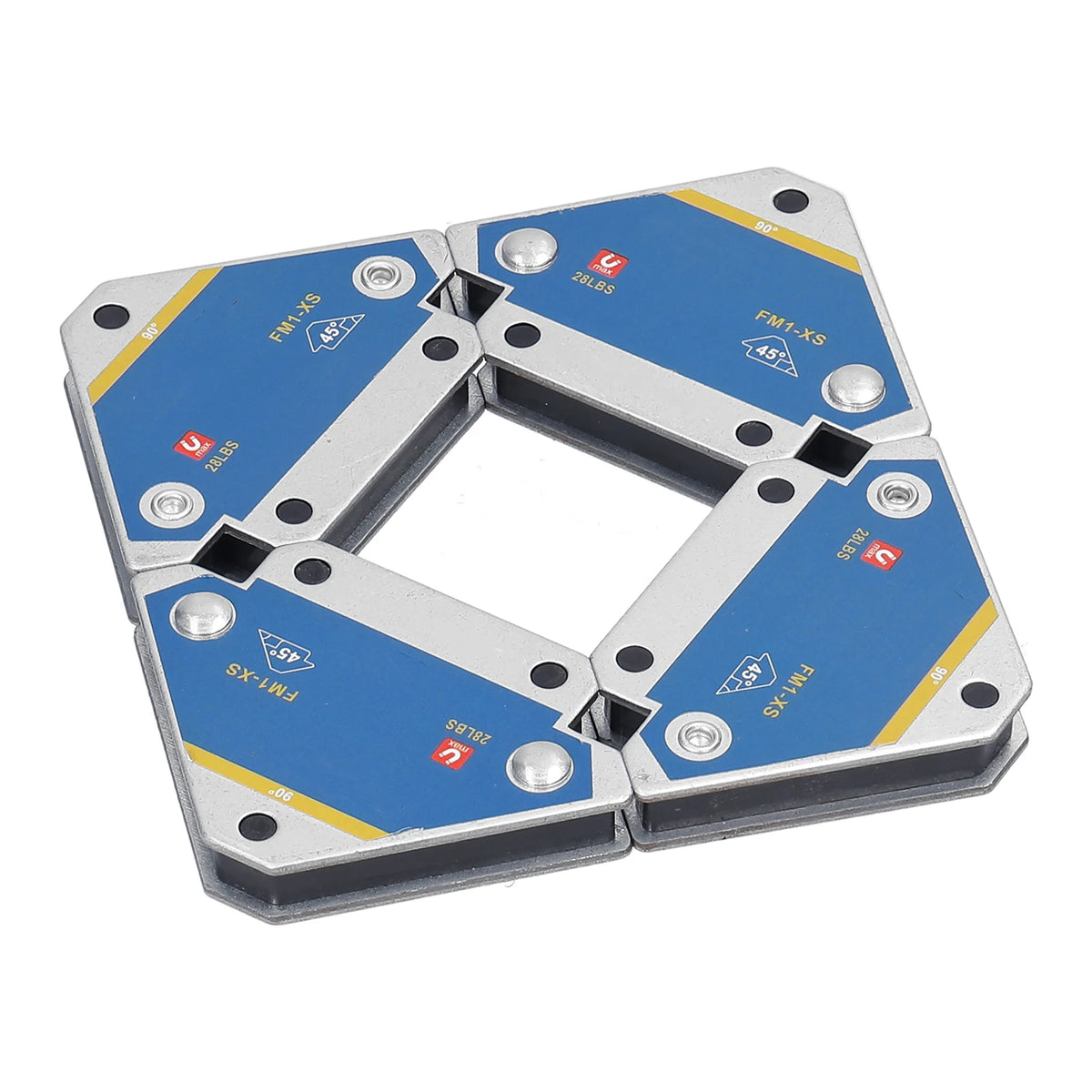 4Pezzi Fissatore Magnetico per Saldatura 45 90 135 Posizionatore Ferrite è un set di supporto magnetico ad alta precisione progettato per semplificare le operazioni di saldatura, saldatura e assemblaggio. Realizzati in lamina di ferro galvanizzato a doppio strato, questi fissatori rimangono piatti e resistono alla deformazione offrendo una forte resistenza alla corrosione. Con angoli regolabili di 45°, 90° e 135°, puoi allineare rapidamente i pezzi di lavoro per giunti precisi e saldature più pulite. La capacità massima di trazione di 28 lb e un set compatto di 4 pezzi lo rendono ideale per saldatura, installazione di tubi, assemblaggio e persino compiti di sollevamento magnetico.