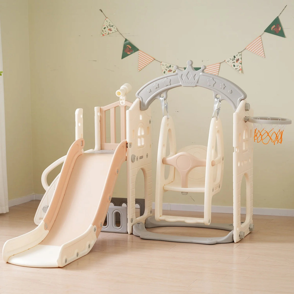 Scopri il Set da Gioco Esterno Jugacool Cinque in Uno con Scivolo e Altalena—un sistema di gioco versatile e tutto-in-uno progettato per stimolare l'immaginazione e mantenere i bambini attivi. Adatto a partire dai 3 anni, questo parco giochi resistente combina altalena, scivolo, scala da arrampicata, canestro da basket e telescopio in un'unica unità salvaspazio che funziona sia in ambienti interni che esterni.
