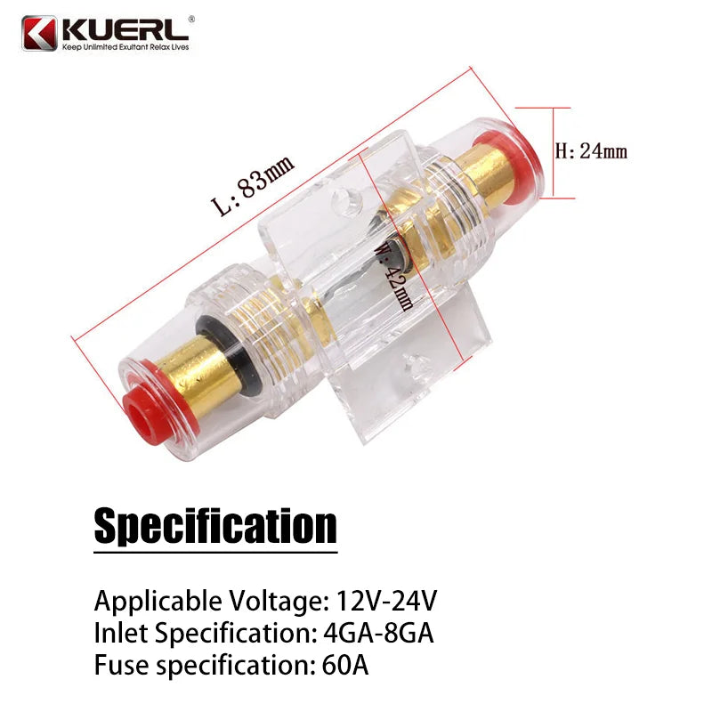 Blocco Portafusibile Trasparente 60A per Audio Auto, Fusibile Inline DC 12V-24V