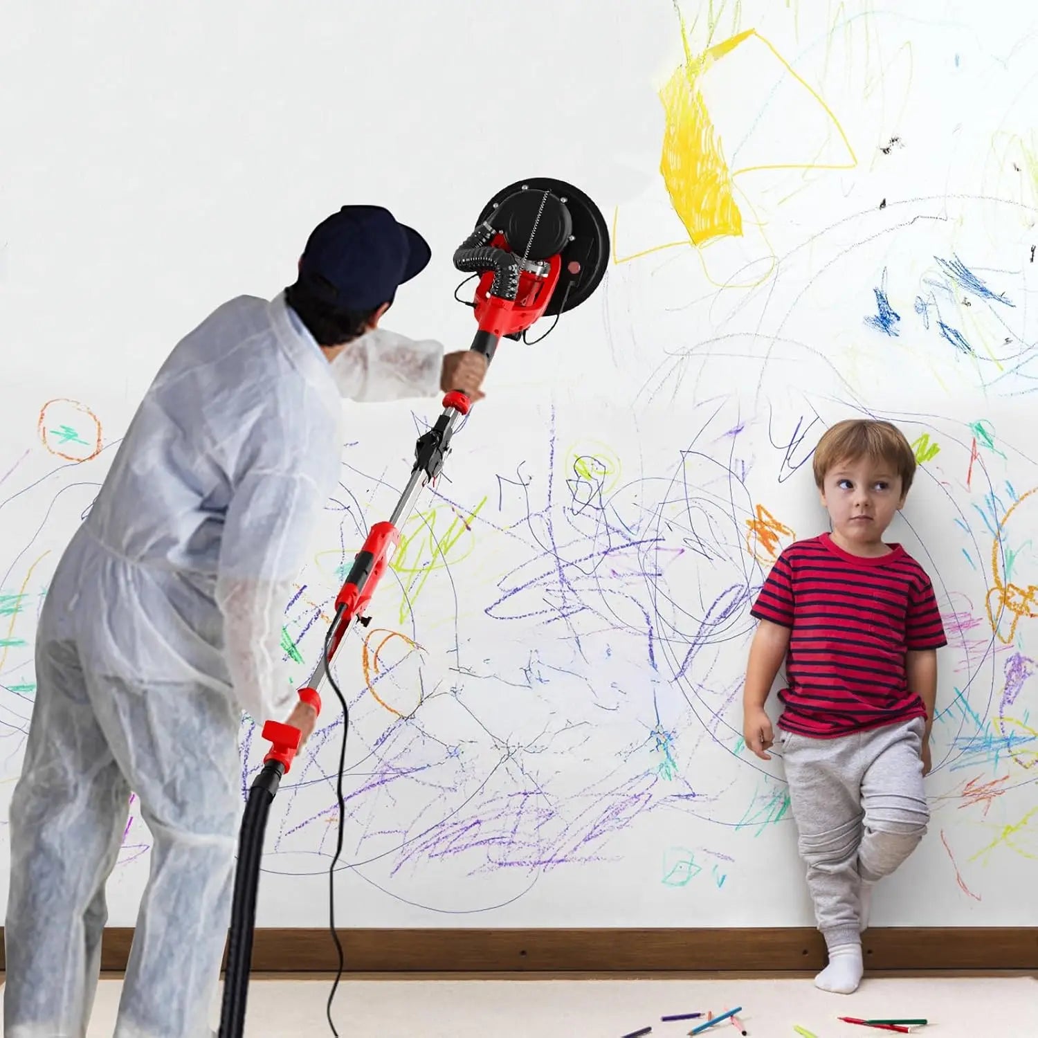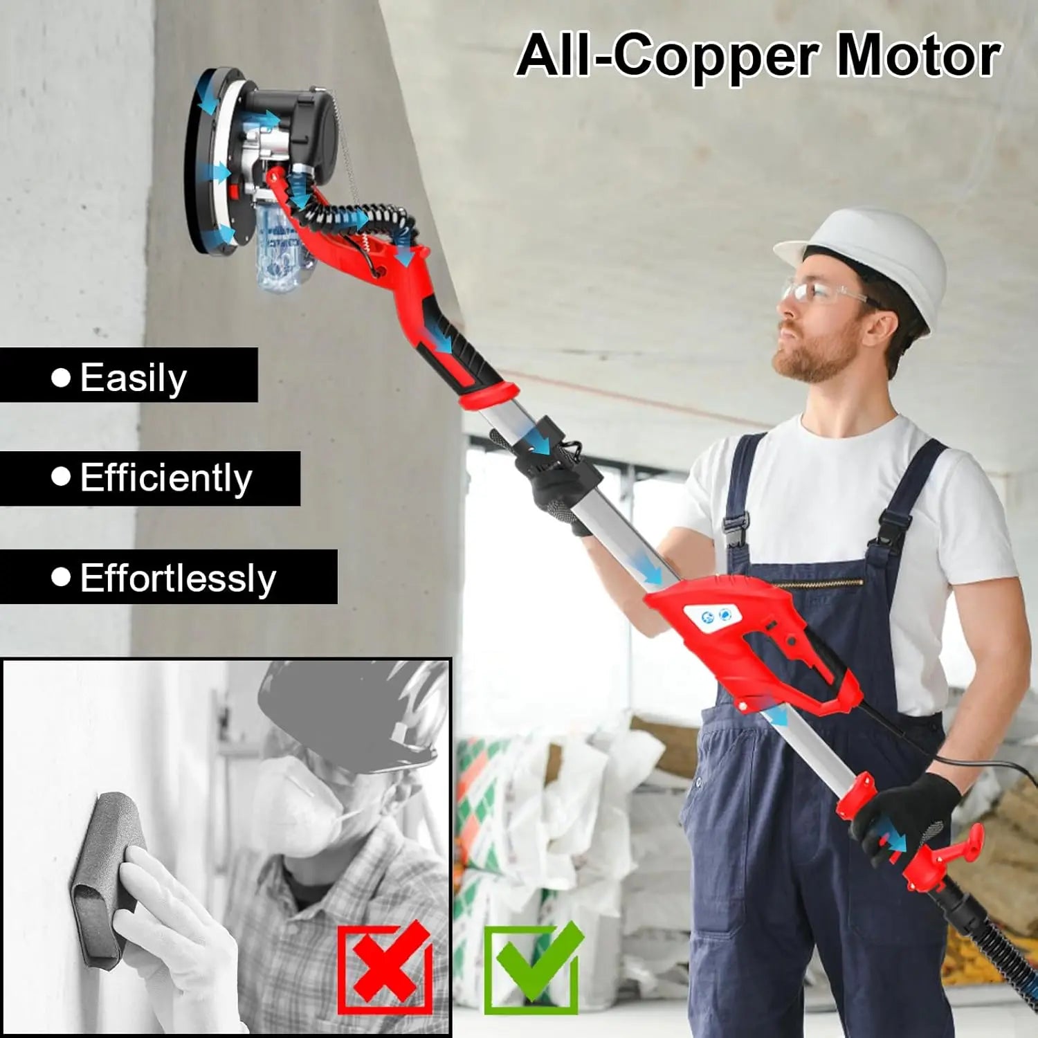 Costruito con un motore in rame puro, questo strumento combina potenza e durata per prestazioni a lungo termine. Viene fornito con un set completo di accessori—levigatrici, tubi e utensili manuali essenziali—così puoi iniziare a lavorare subito. Che tu stia lisciando cartongesso grezzo, rifinendo soffitti a popcorn o sistemando gli angoli, questa levigatrice offre risultati più puliti con meno disordine.