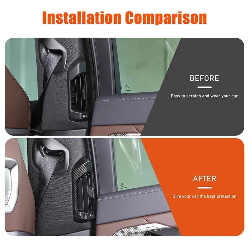 - Stile premium in fibra di carbonio: migliora istantaneamente l'atmosfera dell'abitacolo aiutando a proteggere l'area dell'uscita d'aria del montante B dai graffi.