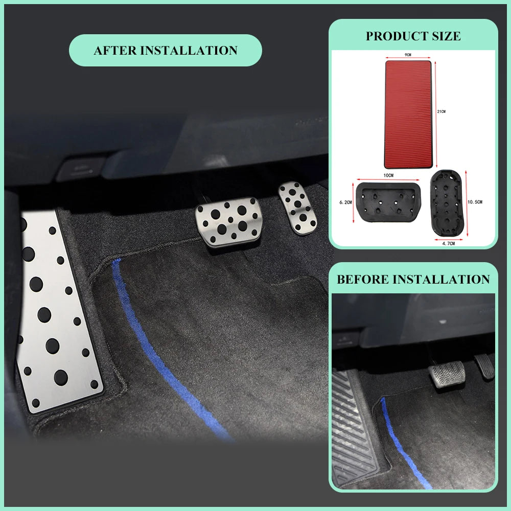 - Include: 1× Copertura per Pedale del Freno, 1× Copertura per Pedale dell'Acceleratore (AT)