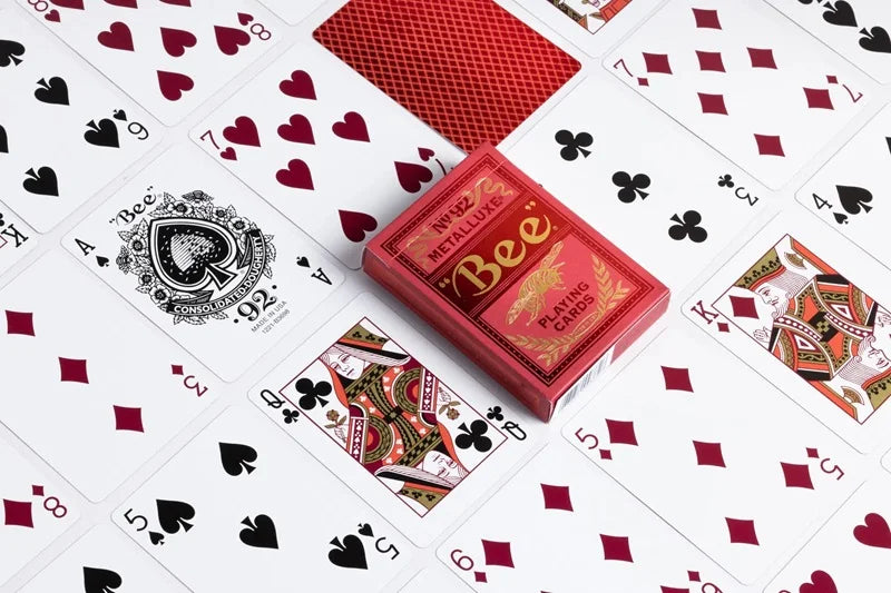Scopri le classiche Carte da Gioco Bee della USPCC, progettate per serate di poker serie e affascinanti spettacoli di magia. Queste carte premium con indice standard sono costruite per durare più a lungo rispetto ai mazzi di carta ordinari, mantenendo la loro forma attraverso mescolate intense e uso frequente. Il marchio Bee offre una sensazione, un suono e una durata unici, perfezionati in oltre un secolo di raffinamento dal 1892 con una polpa di carta appositamente realizzata dalla United States Playing Card Company. Che tu stia distribuendo a Texas Hold’em, organizzando partite casalinghe o eseguendo trucchi di destrezza manuale, le Carte da Gioco Bee offrono prestazioni affidabili di cui maghi e giocatori di carte si fidano.