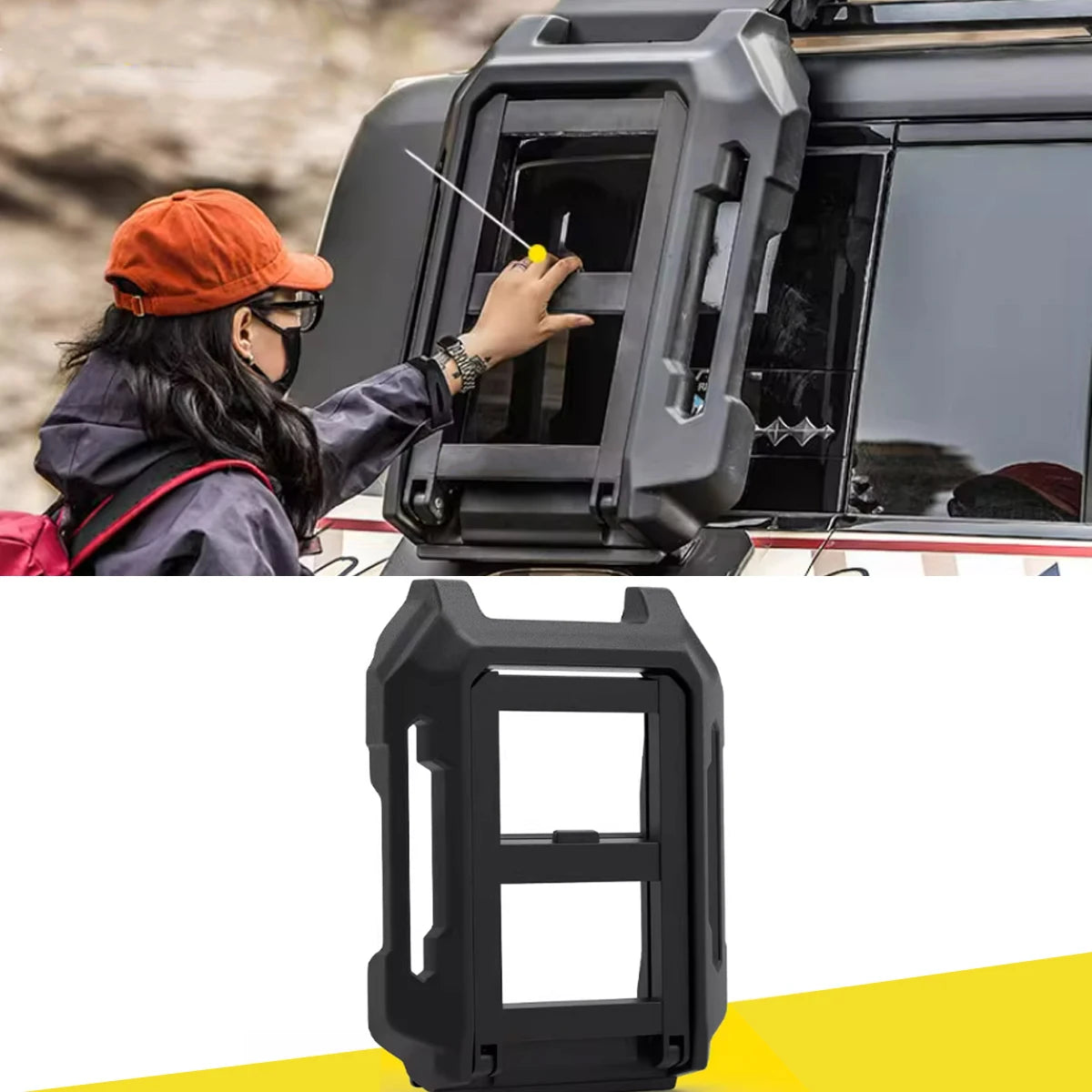 La sicurezza è integrata. La scala dispone di un blocco di sicurezza e di una fibbia di sicurezza per una doppia protezione, garantendo stabilità durante la guida e riducendo il rischio di movimento o furto. Questo è l'accessorio ideale per gli appassionati di fuoristrada che necessitano di un accesso affidabile al tetto senza compromettere l'equilibrio o la sicurezza del veicolo.