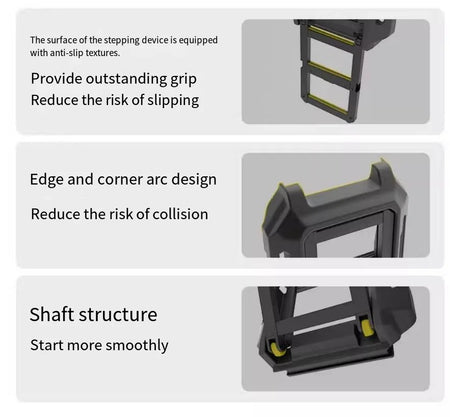 - Materiale: Corpo principale in lega zincata; cornice del bordo esterno supportata da piastre d'acciaio; gradini superiore/inferiore rivestiti in plastica aeronautica; strato antiscivolo in gomma