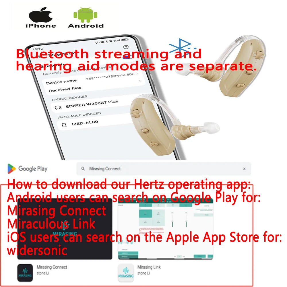 Amplificatori per apparecchi acustici Bluetooth a 16 canali con ricarica USB, controllo del volume, tono regolabile per compensazione della perdita