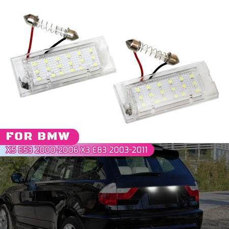 Aggiorna l'illuminazione della targa della tua BMW con le luci per targa LED Bmw X5 E53 X3 E83. Questo paio di LED a 12V sostituisce il pezzo OEM 51137062293, progettato per BMW X5 E53 pre-facelift (2000–2006) e X3 E83 (2003–2010). Costruite da phirikes, queste luci offrono un'illuminazione della targa più luminosa e chiara, aiutando gli altri conducenti a leggere la tua targa di notte e migliorando visibilità e sicurezza. Progettate per una sostituzione semplice, queste luci si installano come un aggiornamento diretto all'illuminazione della targa esistente per un aspetto più pulito e moderno sul tuo veicolo.