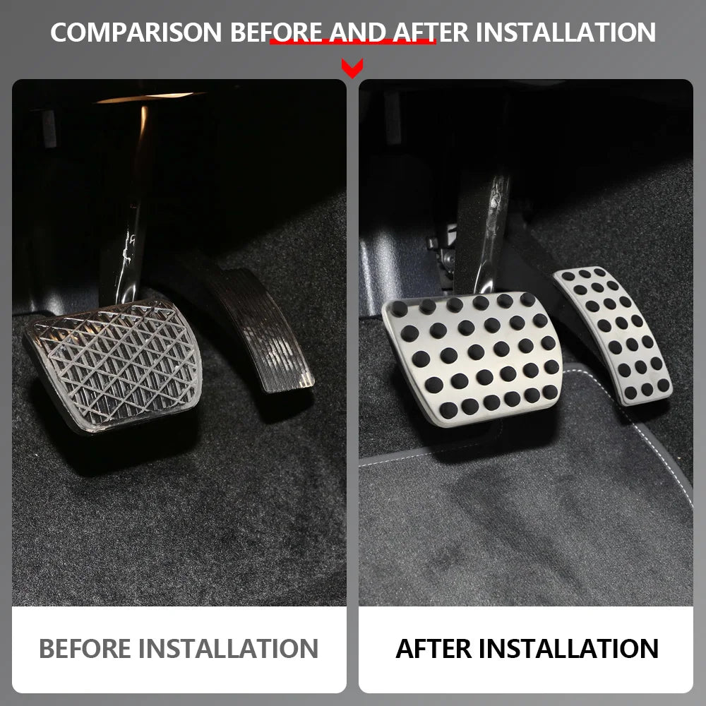 L'installazione della copertura del pedale dell'acceleratore è semplice: basta posizionare la copertura sopra il pedale originale. L'installazione della copertura del pedale del freno richiede la rimozione della gomma del pedale originale, quindi il montaggio della copertura sopra di essa. Questo processo diretto rende l'aggiornamento dei pedali rapido e facile.