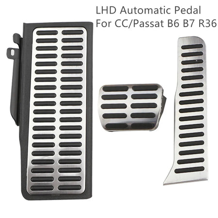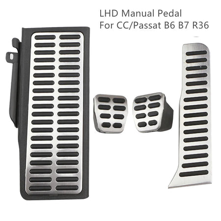 - Opzioni del set: 3 pezzi/set per AT (Acceleratore, Freno, Poggiapiedi) o 4 pezzi/set per MT (Acceleratore, Frizione, Freno, Poggiapiedi). Lo Style2 si adatta a Jetta MK6; lo Style3 si adatta a CC/Passat B6/B7 R36.