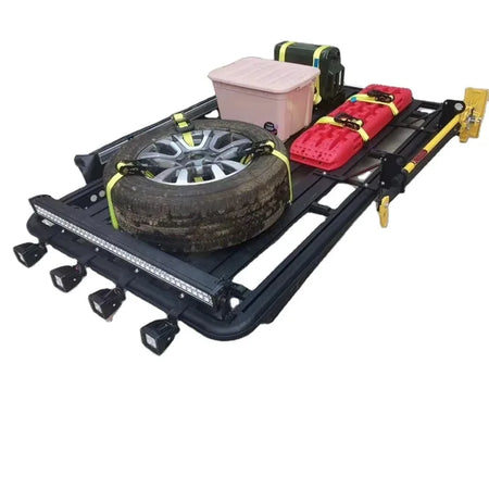 Presentiamo il WINCAR Aluminum Roof Cargo Rack Flat 4x4 Roof Mount, una soluzione robusta e versatile per aumentare notevolmente la capacità di carico del tuo veicolo. Realizzato in alluminio resistente con una finitura nera elegante, questo portapacchi è progettato per resistere alle esigenze di avventure all'aperto, viaggi su strada e trasporti quotidiani. Il suo design leggero unisce resistenza e facilità di installazione, aiutandoti a trasportare bagagli, attrezzature e forniture sul tetto mantenendo lo spazio interno comodo e ordinato. Con una generosa capacità di carico di 200 kg, offre una piattaforma affidabile per oggetti e attrezzature di grandi dimensioni su una vasta gamma di veicoli 4x4.
