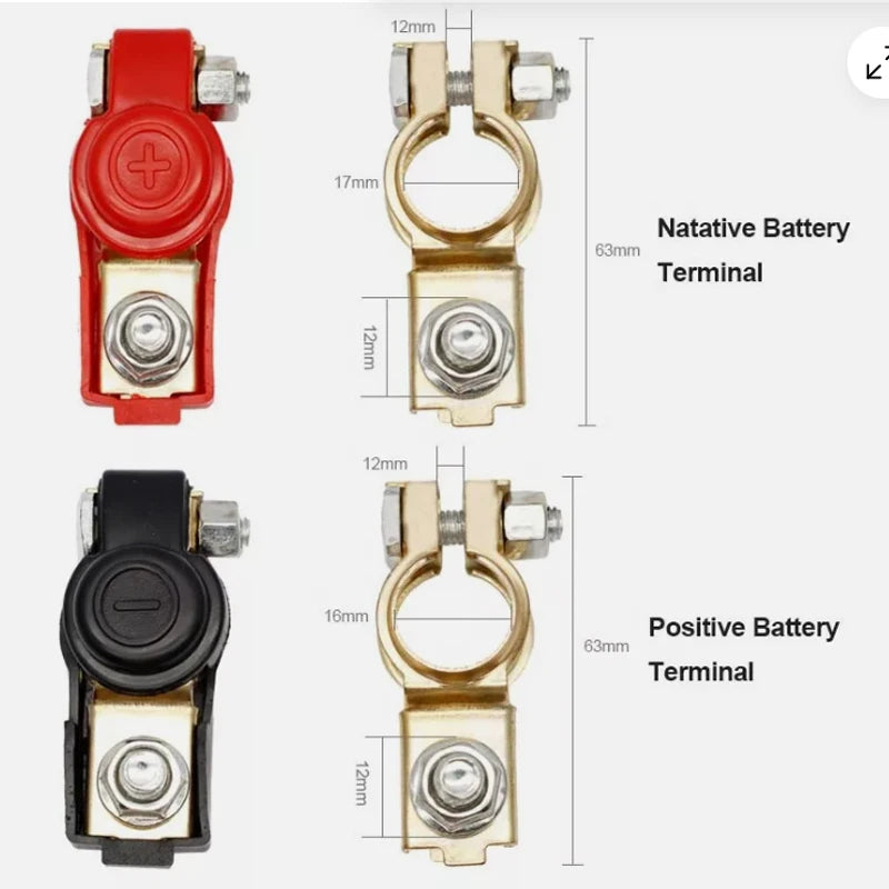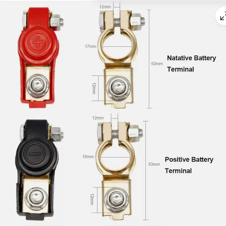 - 1 x set di morsetti per terminale della batteria (positivo & negativo) adatto per sistemi 6V/12V