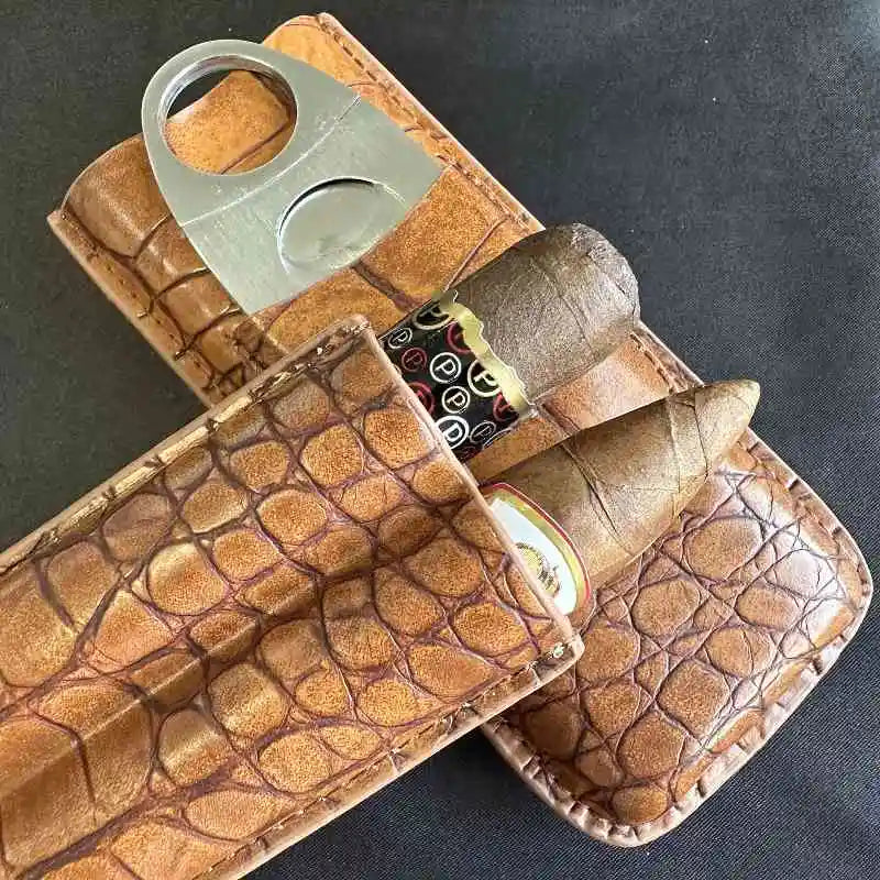 Scopri la Custodia in Pelle per Tubo di Sigari con 2 Scomparti e Taglierina Travel Humidor — una soluzione elegante e portatile pensata per gli amanti dei sigari che apprezzano protezione, comodità e una finitura pulita in movimento. Realizzato in pelle resistente, questo humidor compatto conserva due sigari in modo sicuro mentre la taglierina integrata garantisce un taglio sempre liscio e preciso. Perfetto per viaggi, trasferte di lavoro o weekend fuori porta, combina praticità con un aspetto raffinato che si adatta facilmente a una borsa o tasca. Progettato da Choice e prodotto per un uso quotidiano affidabile, questa custodia unisce funzionalità e stile per ogni occasione.