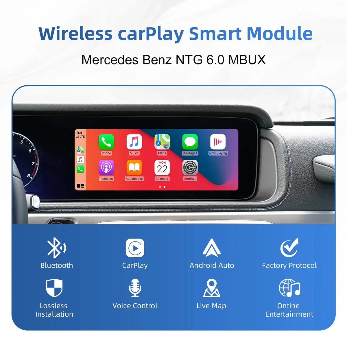 - Goditi Wireless CarPlay e Android Auto sul tuo display originale Mercedes NTG6.0 MBUX senza sostituire l'unità principale.