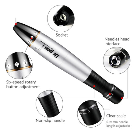 Dr Pen A1 Derma Pen Six Gears Microneedling Scar Remover è un compatto sistema di microneedling in metallo progettato per la cura della pelle a casa. Questa penna derma offre un microneedling di qualità professionale per aiutare a migliorare la texture delle cicatrici, affinare le linee sottili e aumentare l'assorbimento dei sieri e delle creme che applichi dopo le sessioni.