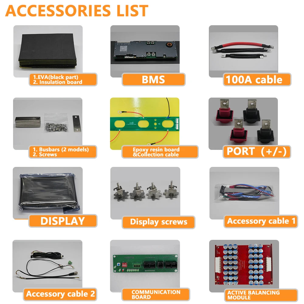 Che tu stia costruendo un sistema di accumulo solare domestico, una piccola soluzione off-grid o una riserva di energia di backup, questa custodia batteria fai-da-te rende semplice l’integrazione con i marchi di inverter più diffusi. Il kit include una custodia, BMS, schermo di visualizzazione, interruttore, scheda di comunicazione, bilanciatore attivo e tutti i poli, viti e accessori necessari per un modulo di accumulo energetico completo e pronto da collegare. Con un ingombro compatto e una forte capacità energetica, è una soluzione pratica per massimizzare l’autoconsumo e garantire la disponibilità di energia durante le interruzioni.