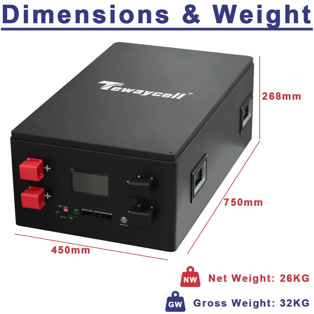 Custodia batteria fai-da-te Tewaycell LiFePO4 280Ah con BMS integrato e bilanciamento attivo per ESS solare 48V 51.2V 15kWh