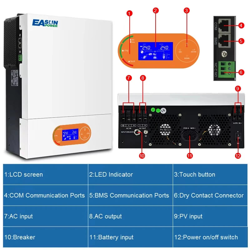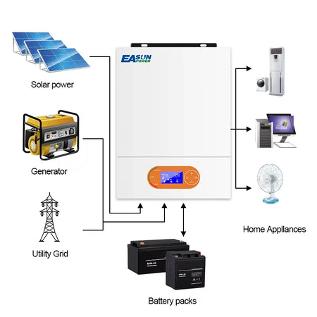 Inverter Ibrido Off-Grid 6kW 48V o 4kW 24V, Onda Sinusoidale Pura, MPPT 80A a 120A, 230V, WiFi