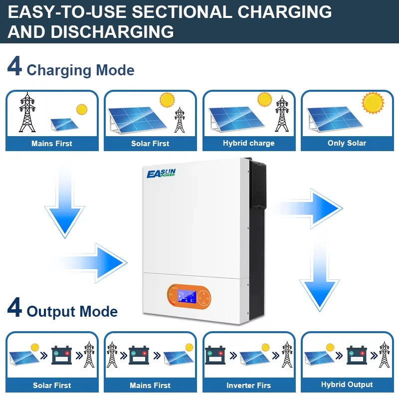 Incontra l'Inverter Ibrido Off-Grid SMR II — una soluzione di alimentazione versatile e ad alta efficienza disponibile nelle configurazioni 6kW 48V e 4kW 24V. Progettato per una vera vita off-grid, questo inverter fornisce un'onda sinusoidale pura affidabile a 230V con ricarica MPPT intelligente e monitoraggio WiFi integrato. Prioritizza l'energia solare o l'ingresso da rete/generatore secondo necessità, supportando l'operazione con o senza batteria (la tensione PV deve superare i 200V per funzionare senza batteria).