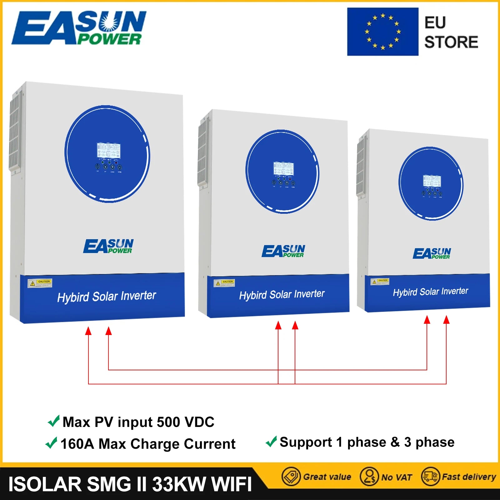 Inverter Ibrido Trifase 33kW con MPPT, 2 Caricabatterie Solari MPPT, WiFi Integrato, Supporto BMS al Litio