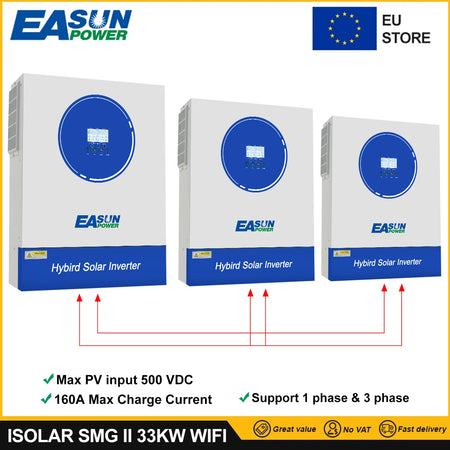 L'Inverter Ibrido Trifase 33kW con MPPT, 2 caricabatterie solari MPPT, WiFi integrato e supporto BMS al litio è una centrale versatile per appassionati di solare e installazioni professionali. Questa unità trifase da 33 kW combina avanzata carica solare MPPT, robusta compatibilità con batterie al litio (Pylontech, Weco, Soltaro) e monitoraggio online senza interruzioni tramite WiFi integrato. È progettata per massimizzare la raccolta di energia, fornire alimentazione di backup affidabile e semplificare la gestione del sistema per abitazioni, piccole imprese e progetti off-grid.