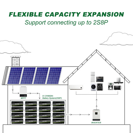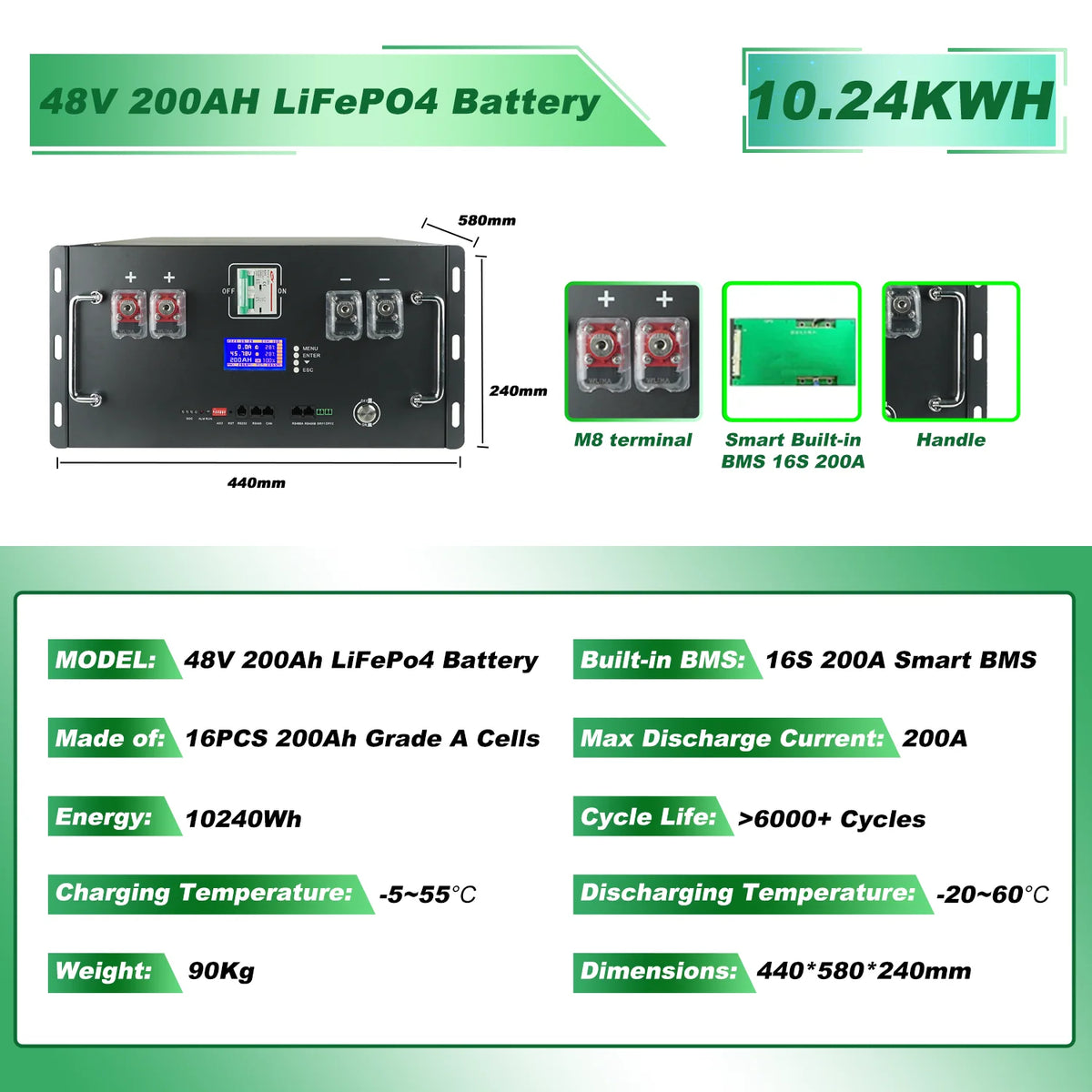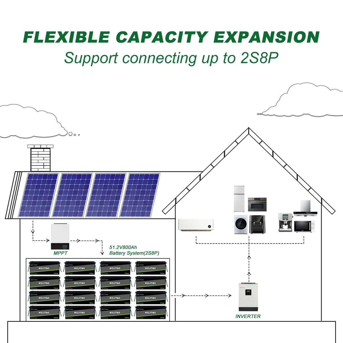 - Configurazioni flessibili: funziona con sistemi da 12V, 24V e 48V con capacità da 100Ah a 300Ah, permettendo aggiornamenti facili e stoccaggio energetico scalabile.