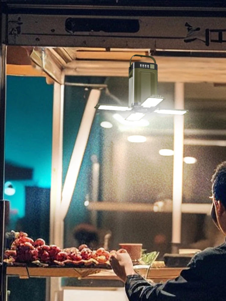 Incontra la Lanterna da Campeggio a Energia Solare Pieghevole Impermeabile Led — la soluzione di illuminazione e alimentazione versatile per gli appassionati di outdoor. Il suo ingegnoso design a 4 lame si piega in modo compatto, poi si apre in un fascio luminoso ampio e brillante che illumina il tuo campeggio, tenda o area di lavoro. Con ricarica solare più USB-C, questa lanterna funge anche da power bank portatile, aiutandoti a rimanere connesso anche fuori rete. Progettata per resistere alle avventure all'aperto, è ideale per campeggio, escursionismo, pesca e preparazione alle emergenze.