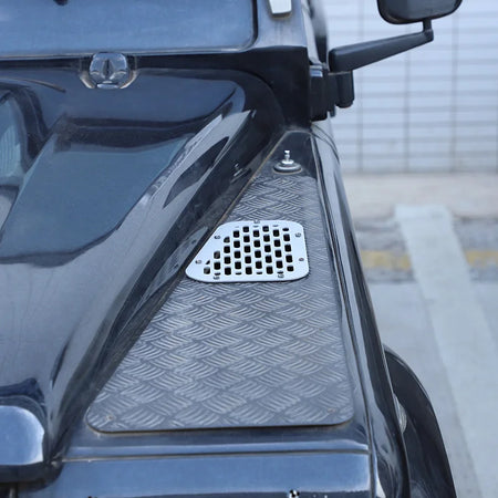 La copertura a rete per uscita aria del cofano offre una protezione affidabile contro detriti, sporco e piccoli sassi che possono influire sulle prese d'aria di raffreddamento del motore. Il suo design elegante completa le linee del Defender offrendo una difesa pratica contro l'usura. Disponibile in Nero, Argento e Nero Opaco per abbinare o accentuare la finitura del tuo veicolo. Ogni pezzo è prodotto in uno stabilimento certificato ISO9001 per garantire qualità e durata costanti. L'installazione facile permette un aggiornamento rapido senza strumenti speciali o modifiche.