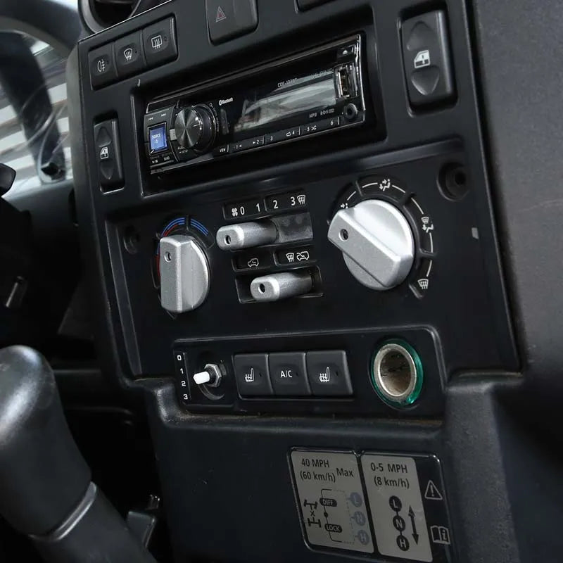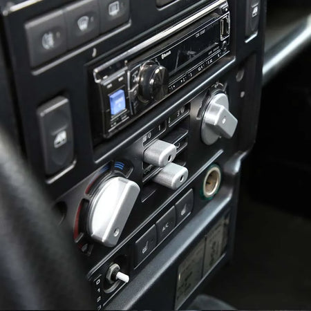 Aggiorna l'interno del tuo Land Rover Defender con la Copertura manopola in alluminio argento (modello YW-010). Realizzata in lega di alluminio di alta qualità e rifinita in un elegante argento, questa copertura protegge il controllo del volume del condizionatore da graffi e usura quotidiana, donando alla tua cabina un aspetto raffinato e moderno.