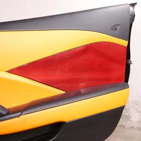 Aggiorna l'interno della tua Chevy Corvette C7 con l'adesivo per pannello porta in fibra di carbonio 2014-2019. Vera fibra di carbonio morbida con un audace accento rosso offre un aggiornamento elegante proteggendo i pannelli porta da graffi e usura. Progettato per i modelli Corvette C7 2014–2019, si installa rapidamente con adesivo automobilistico biadesivo e non richiede tagli.