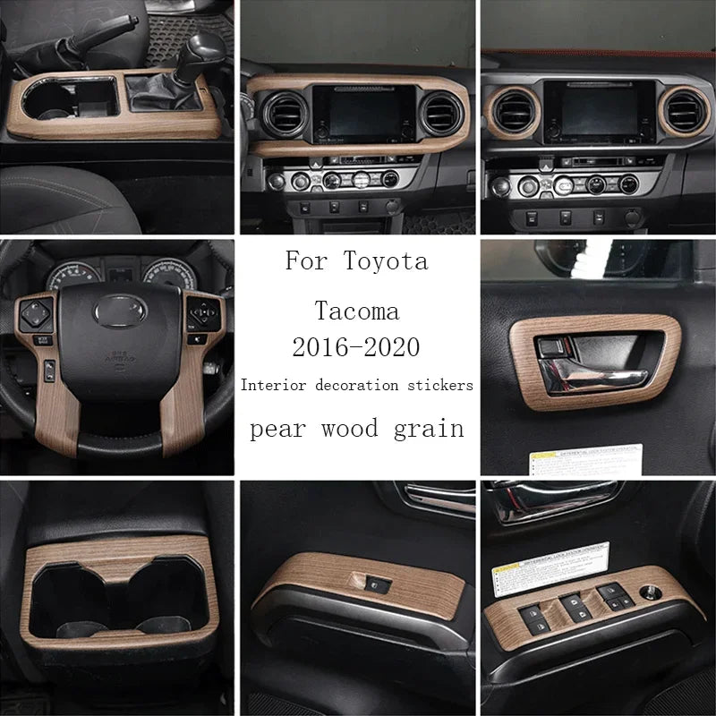 Aggiorna l'interno della tua Toyota Tacoma 2016-2020 con l'adesivo cornice pulsante volante effetto legno di pero. Realizzato in ABS resistente con finitura effetto legno di pero, questo rivestimento interno migliora l'aspetto dell'abitacolo proteggendo la cornice del pulsante del volante da graffi e usura quotidiana. È progettato per un adattamento preciso sui Tacoma 2016-2020 e si installa rapidamente usando il nastro adesivo automobilistico preapplicato—non sono necessari strumenti speciali.