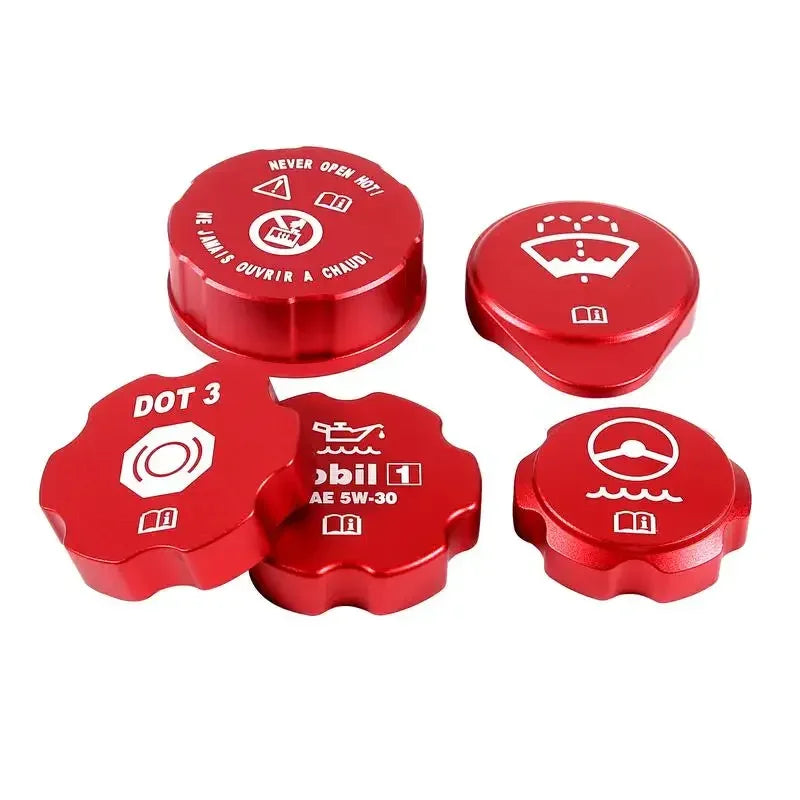 - 5 pezzi di tappi per serbatoio liquido tergicristallo in lega di alluminio in Argento/Rosso