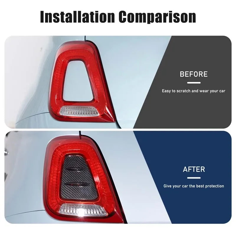 - 2 x Adesivi decorativi in vera fibra di carbonio per pannello fanale posteriore per Fiat 500 (2016-2025+)